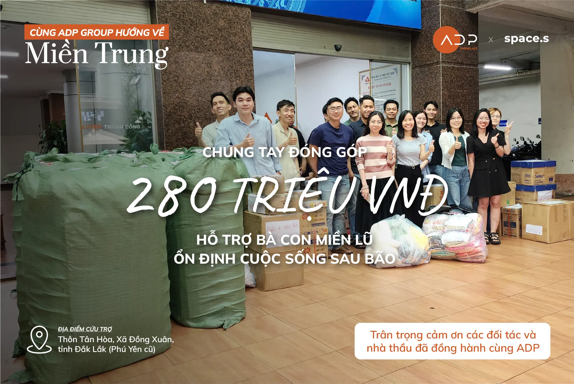 Đối với Tập đoàn ADP (ADP x Space.s), đây không chỉ là câu chuyện về người dân miền Trung Việt Nam, mà còn là câu chuyện của chính các thành viên trong nhóm chúng tôi, những gia đình đang sống giữa vùng lũ lụt, nơi cuộc sống thường nhật bị đảo lộn. Mỗi cuộc gọi và tin nhắn từ những người thân yêu đang bị nước lũ dâng cao càng khiến tinh thần đoàn kết trở nên cấp thiết và chân thành hơn bao giờ hết.